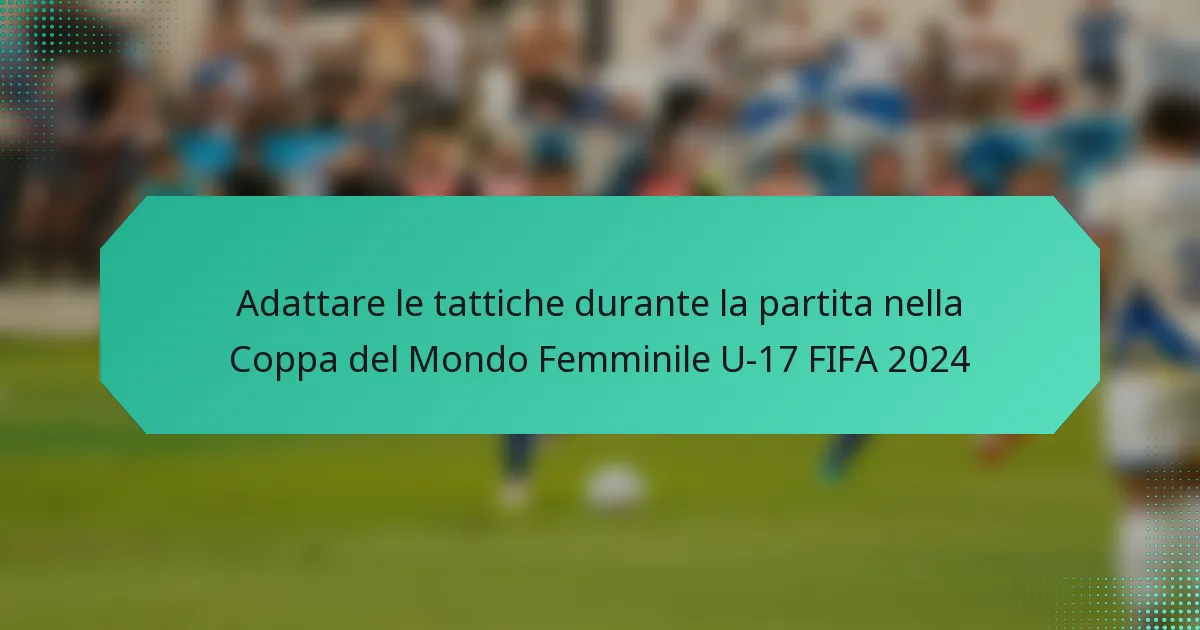 Nel FIFA U-17 Women’s World Cup 2024, le squadre stanno dimostrando la loro capacità di adattare le tattiche durante la partita, impiegando aggiustamenti strategici nelle formazioni e nelle sostituzioni dei giocatori. Gli allenatori utilizzano l’analisi dei dati in tempo reale e una comunicazione efficace per rispondere alle dinamiche in evoluzione del gioco, permettendo loro di sfruttare le debolezze degli avversari e migliorare le proprie strategie difensive. Questa adattabilità si è rivelata cruciale per migliorare le prestazioni e ottenere risultati favorevoli in partite ad alto rischio.