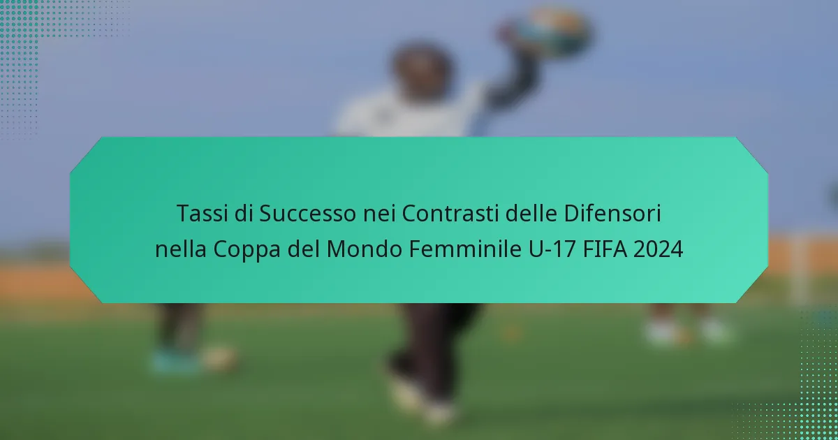 I tassi di successo nei contrasti per i difensori nella Coppa del Mondo Femminile FIFA U-17 2024 evidenziano l’efficacia variabile dei giocatori nel sottrarre palla agli avversari mantenendo la disciplina. Il torneo di quest’anno ha visto i difensori mostrare abilità eccezionali, con molte squadre che hanno implementato strategie aggressive che hanno portato a tassi di successo più elevati rispetto alle edizioni precedenti. Di conseguenza, i difensori di spicco non solo migliorano le loro prestazioni individuali, ma giocano anche un ruolo cruciale nei successi delle loro squadre sulla scena globale.